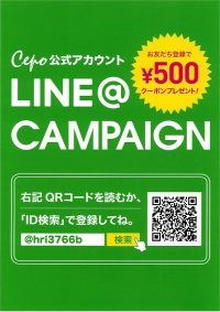 Cepo公式LINEアカウント お友だち登録で、2/20(水)まで