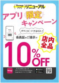 アプリ限定キャンペーンで会員証のご提示で店内全品10%OFF!!