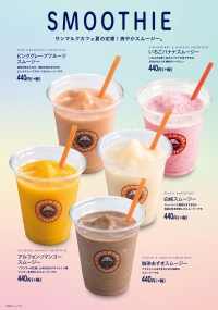 レギュラーメニューで大人気のいちごバナナスムージーに加えて、新たに4種類がそろって登場!