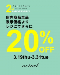 までの13日間、店内商品がALL20%OFF(セール含む)