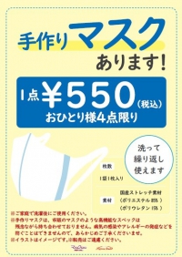 ※手作りマスクは、病気の感染やアレルギーの発症を防ぐ事は出来ませんので