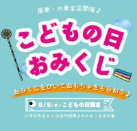 5月5日こどもの日はご家族で風車・水車でお食事やパフェはいかがですか? 店内ご利用のおこさまに必ず当たる「こどもの日おみくじ」を開催!!! 店内ご利用の小学6年生以下のおこさまにはみなさまご参加いただけます! こどもの日限定のおみくじ、ぜひお楽しみください♪