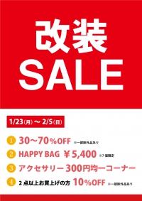 日頃ご愛顧いただいているお客様に感謝の気持ちを込めて改装セールを行います。