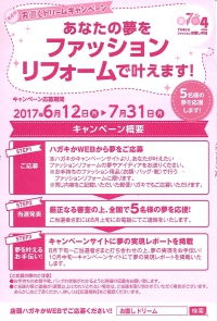 店舗に設置している専用ハガキまたはキャンペーンサイト(http://www.reform-s.com/dream-cam/2017/)より、あなたが叶えたいファッションリフォームの夢やアイディアをお送りください。
