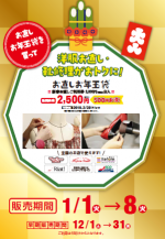 販売価格:2,500円(税込み)3000円分のお直しご利用券と懸賞に応募できるハガキ付き!