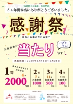 期間内にお食事をされた方にはハズレ無しのくじがひけます! 1等2,000円、2等1,000円、3等500円、4等100円分の
