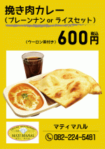 ・挽き肉カレー(プレーンナン or ライス セット)600円(税込)