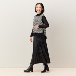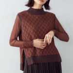 ダイヤ柄のニットベストはサイドスリット入りなので、