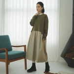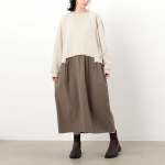 裏起毛のスウェットプルオーバーと、フレアスカートをドッキングしたワンピース。