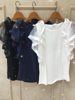 袖フリルチュールカットプルオーバー \3,900+税