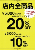 3,000円以上で10%OFF、5,000円以上で20%OFF
