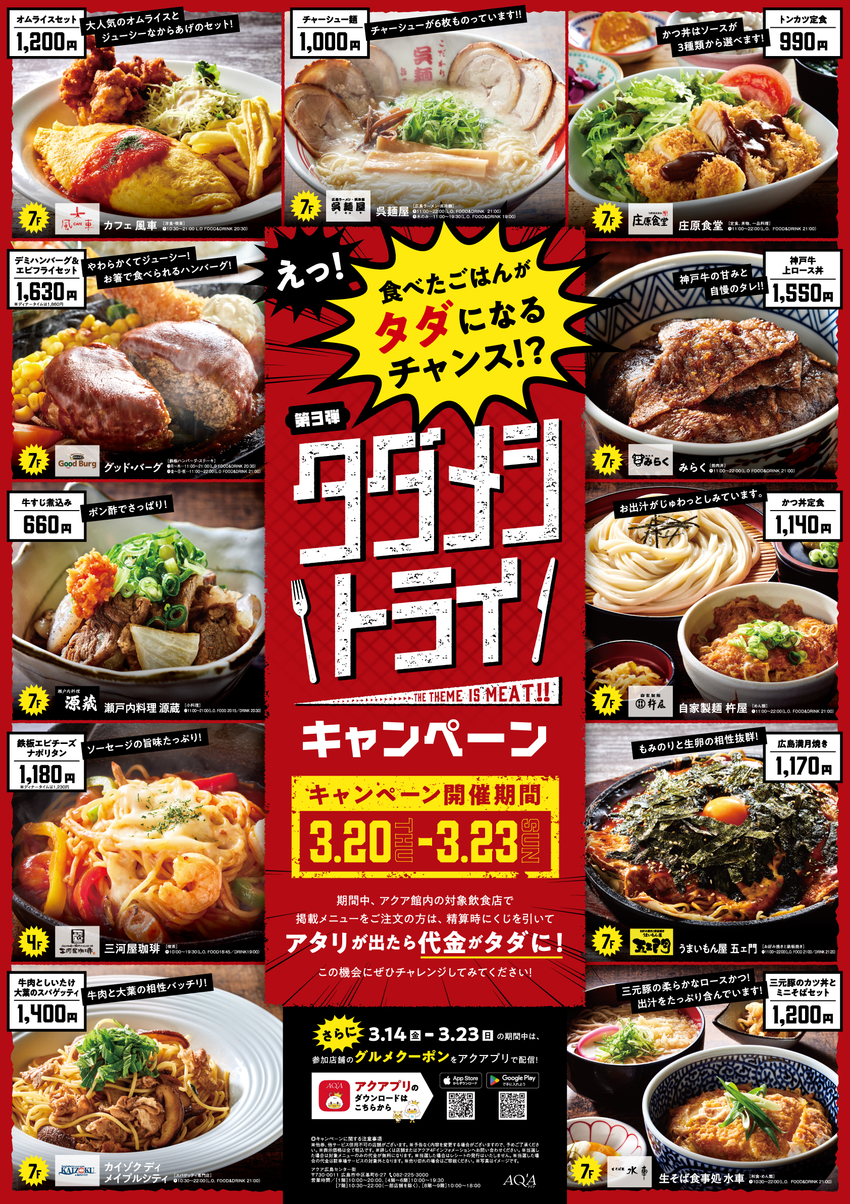 抽選で該当メニューの飲食代金がタダになるチャンス!