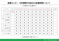 ゴールデンウィーク期間における8階・9階医療センターの休診及び診療時間についてお知らせします。