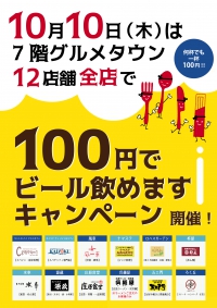100円でビール飲めますキャンペーン開催!!