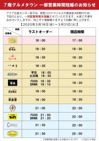 3月18日(水)以降は、店舗により、営業時間が異なります。