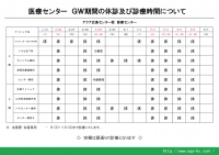 ゴールデンウィーク期間における8階・9階医療センターの