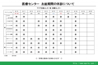 お盆期間における8階・9階医療センターの休診及び診療時間についてお知らせします。