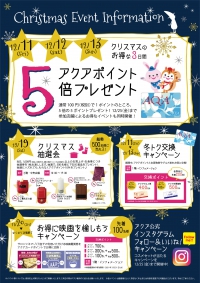 ったかグッズやクリスマスにおすすめな商品をプレゼントします。また、ハズれた方にはアクアポイント10ptをプレゼントします。