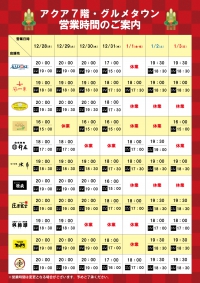 年末年始の営業時間は以下の通りです。