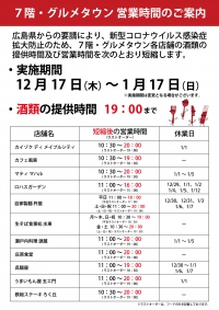 1月17日(日)まで営業時間を変更させていただきます。