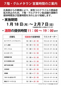 ※酒類提供時間及び営業時間の短縮要請を受け、