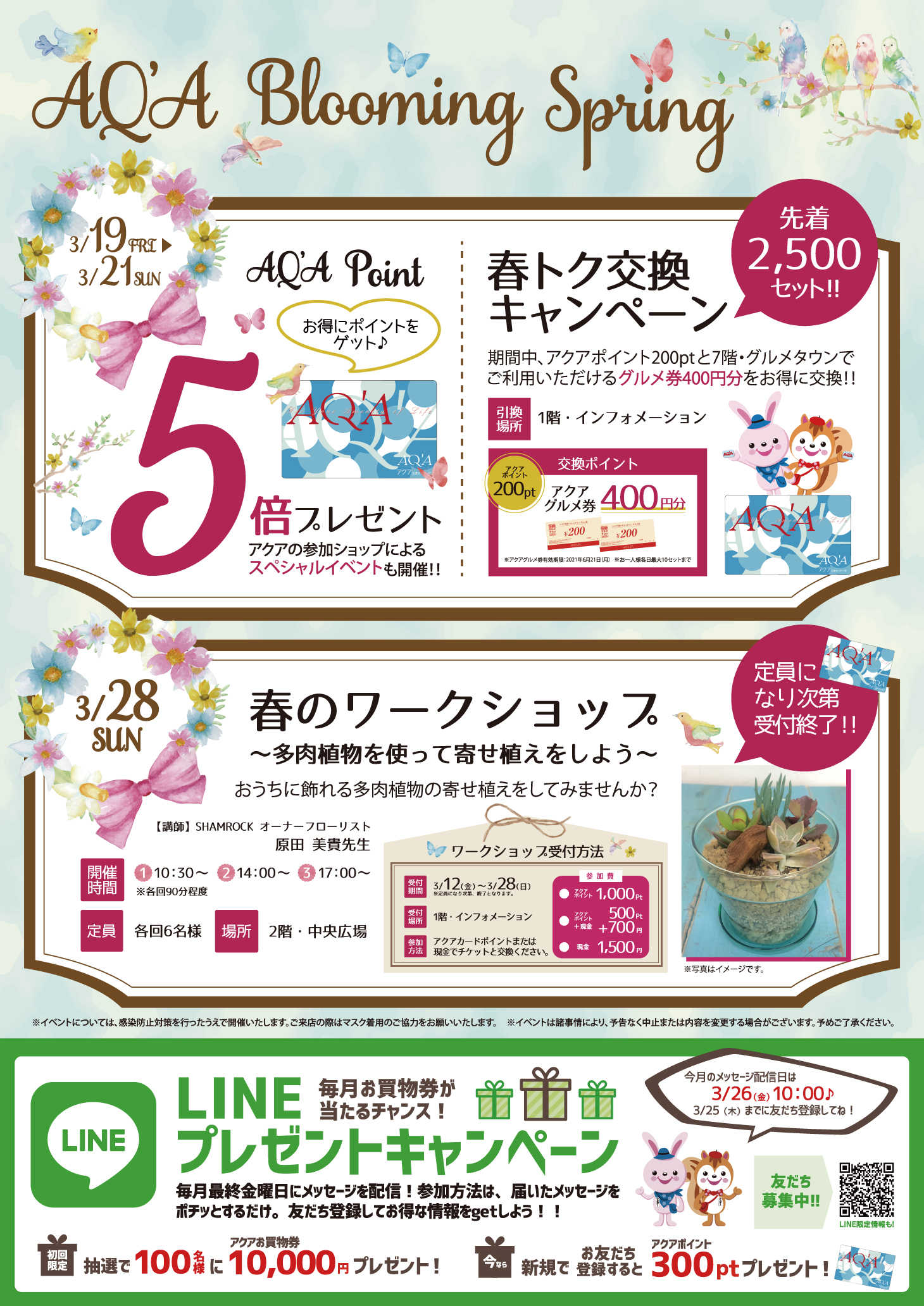 ♪アクアの春イベント後半!お得なイベント情報のお知らせです♪