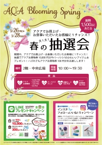 内 容:期間中、アクアで500円以上(税込)のお買上げ・お食事いただいたお客様に1チャンス!