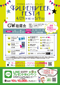 アクアのGWイベントスタート!お得な情報をお届けします!!