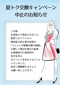 お客様並びに従業員の安全を考え、当イベントを中止することといたしました。