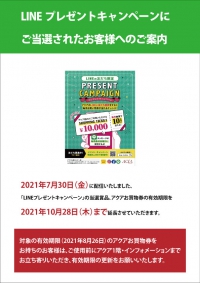 当選賞品、アクアお買物券の有効期限を2021年10月28日(木)まで