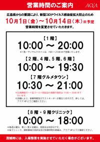 この度、アクア広島センター街では、広島県からの要請により、営業時間を