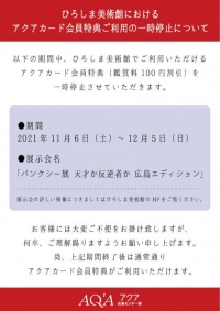 アクアカード会員特典(鑑賞料100円割引)を一時停止させていただきます。