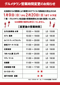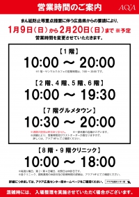 要請により、1/9(日)から営業時間を以下のとおり変更させていただきます。