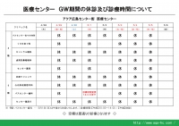 ゴールデンウィーク期間における8階・9階医療センターの