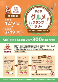【内容】期間中、アクアの飲食店舗全店を対象に、500円(税込)