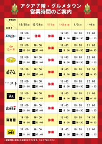 アクア8階・9階クリニック、調剤薬局の年末年始の診療につきましては、こちらをご確認ください。