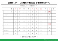 GW期間における8階・9階医療センターの休診および診療時間について