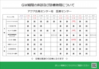 ゴールデンウィーク期間における8階・9階医療センターの