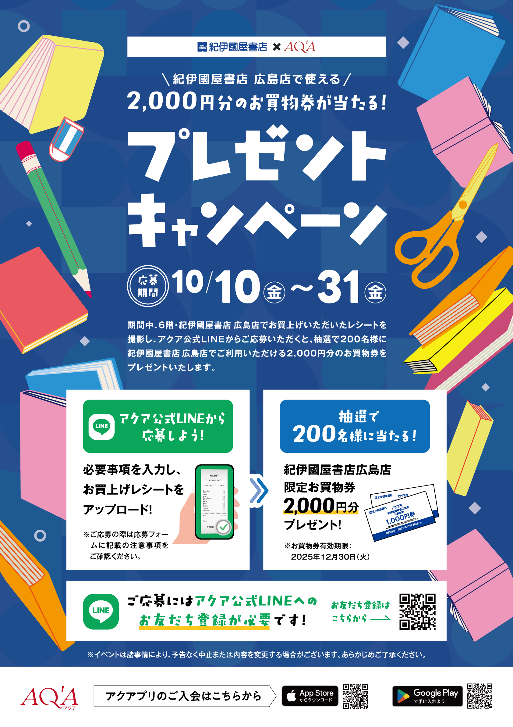 抽選で200名様に紀伊國屋書店 広島店でご利用いただける