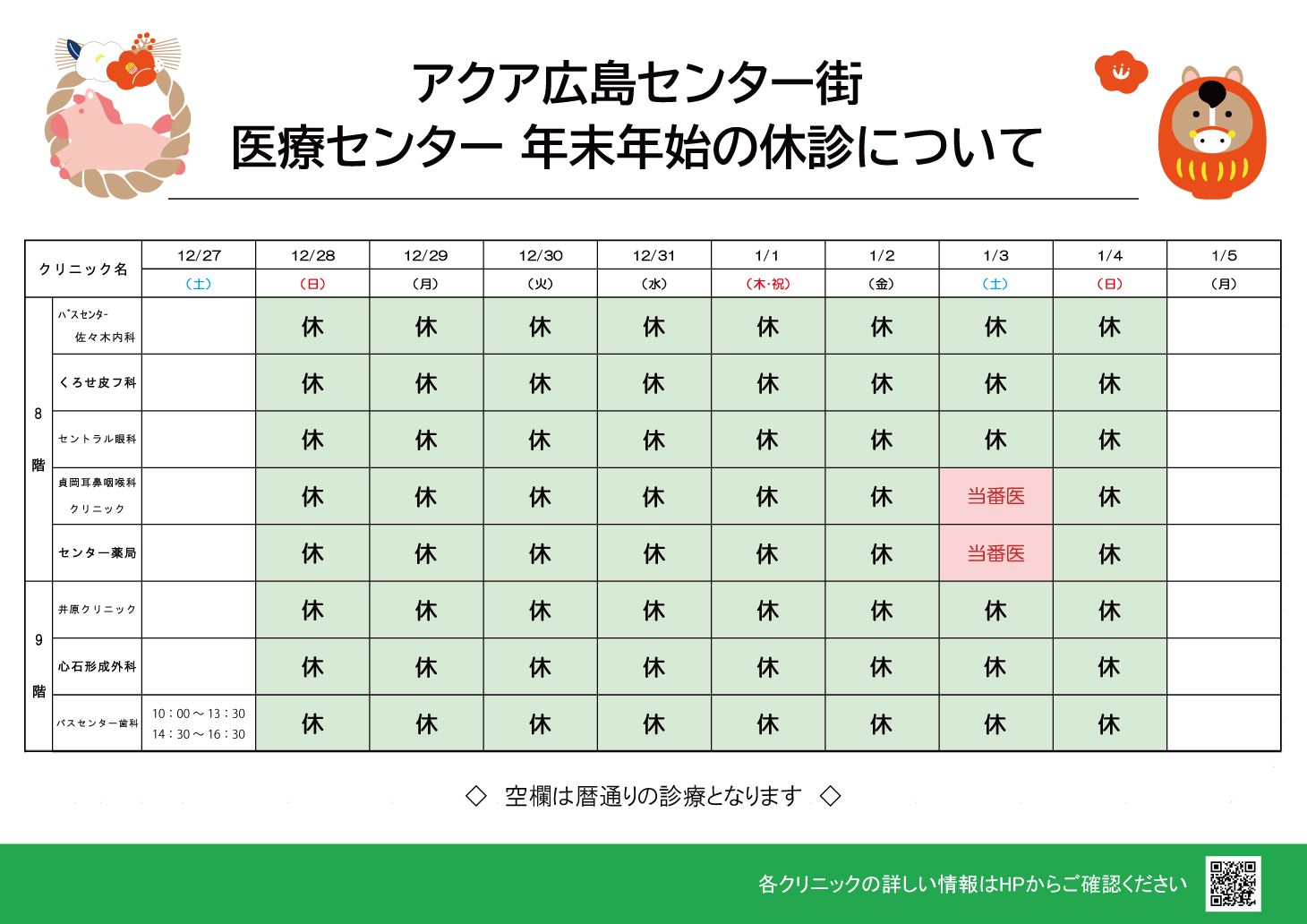 年末年始における8階・9階医療センターの休診についてお知らせいたします。