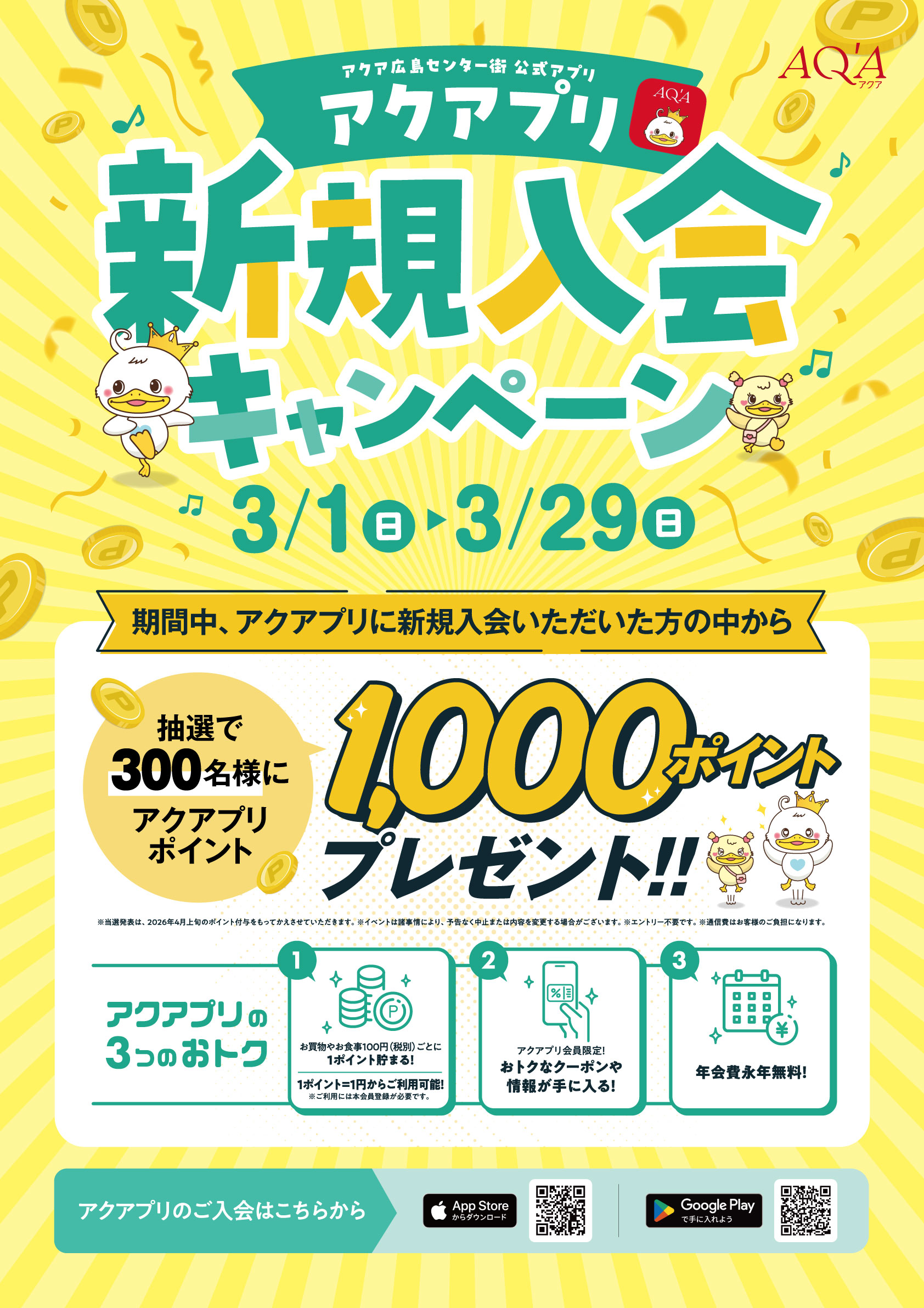 抽選で300名様にアクアプリポイント1,000ポイントを