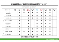 アクア広島センター街医療センターのお盆期間中の休診及び診療時間について拡大画像をご覧ください。