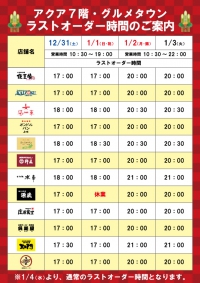 ※7階グルメタウンはラストオーダー時間を変更しています。
