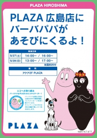 5/27(土)と28(日) 午後、バーバパパと一緒に写真を撮ろう! 一緒に撮ると、運気上昇?? いま、大人気のバーバパパが広島に遊びに来ます。 このチャンスをお見逃しなく!!