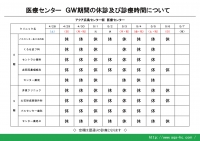 ゴールデンウィーク期間における8階・9階医療センターの休診についてお知らせいたします。